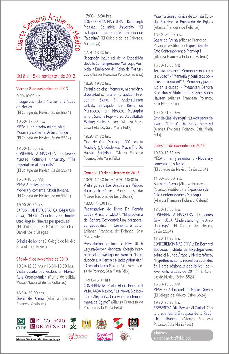 Inauguración de la 4ta Semana Árabe en México (El Colegio de México, Salón 5524)